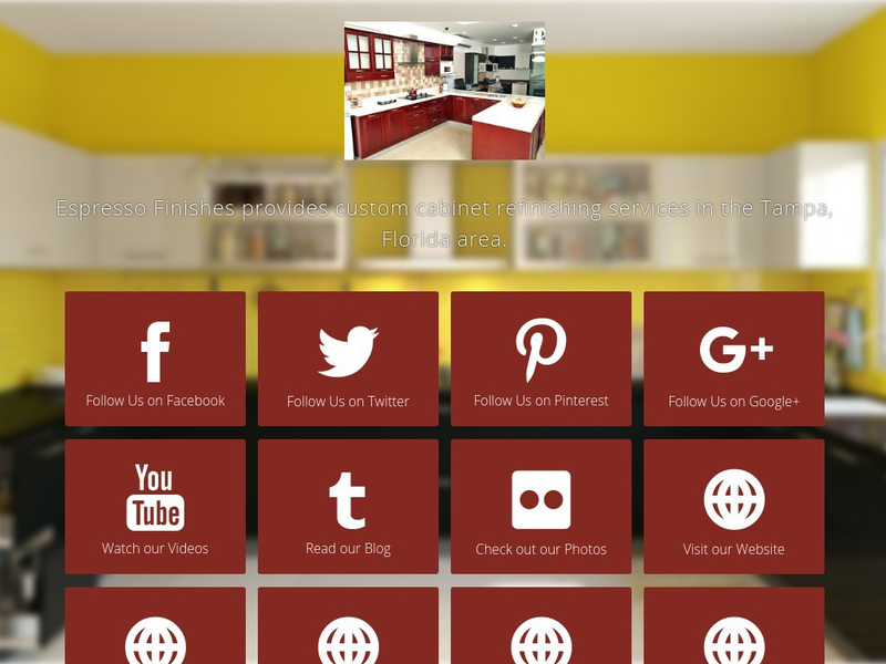 Follow Tampa Cabinet Refacing on Social Media. Espresso Finishes provides custom cabinet refinishing services in the Tampa, Florida area.